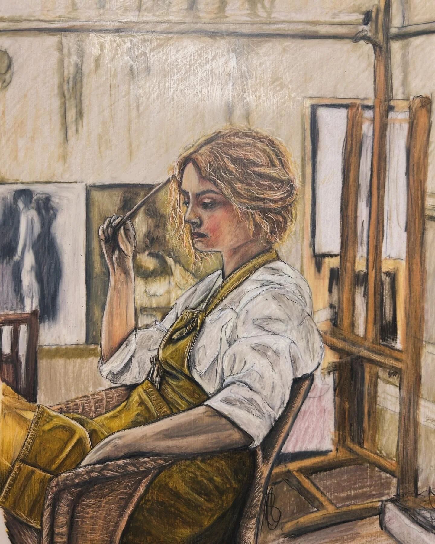 "The thoughtful artist" Original available to purchase - framed