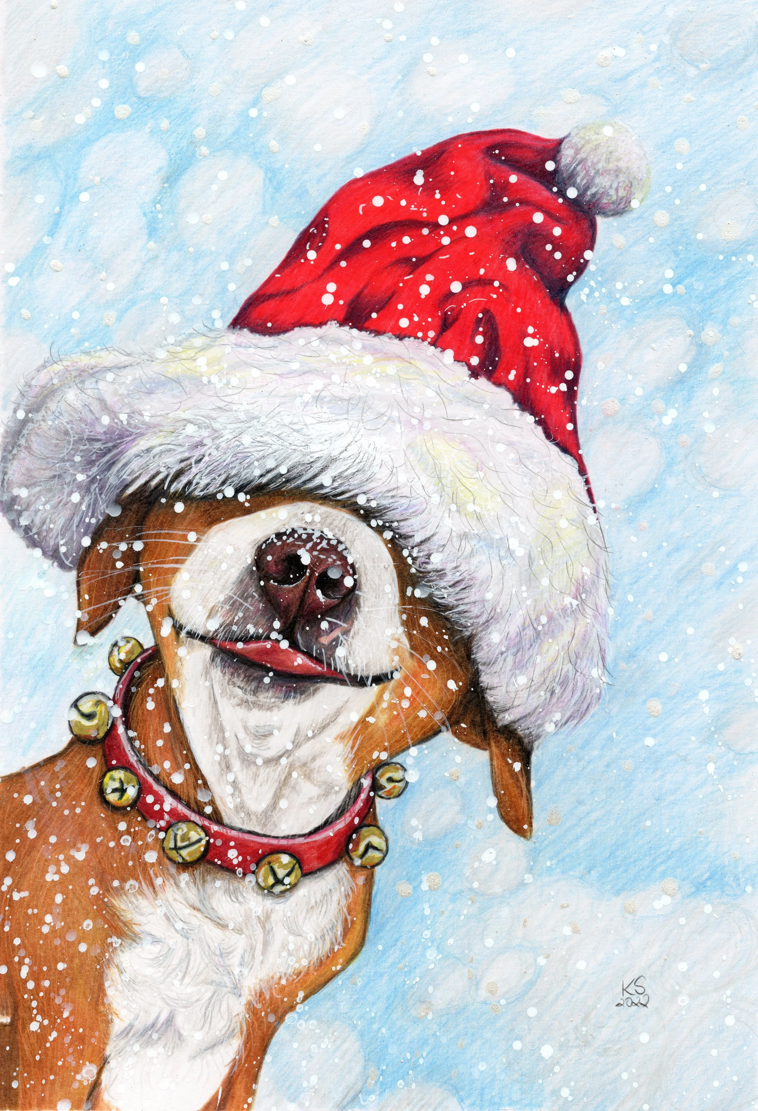"Santa Paws no.2" Original available Cards and other items available from my Etsy store