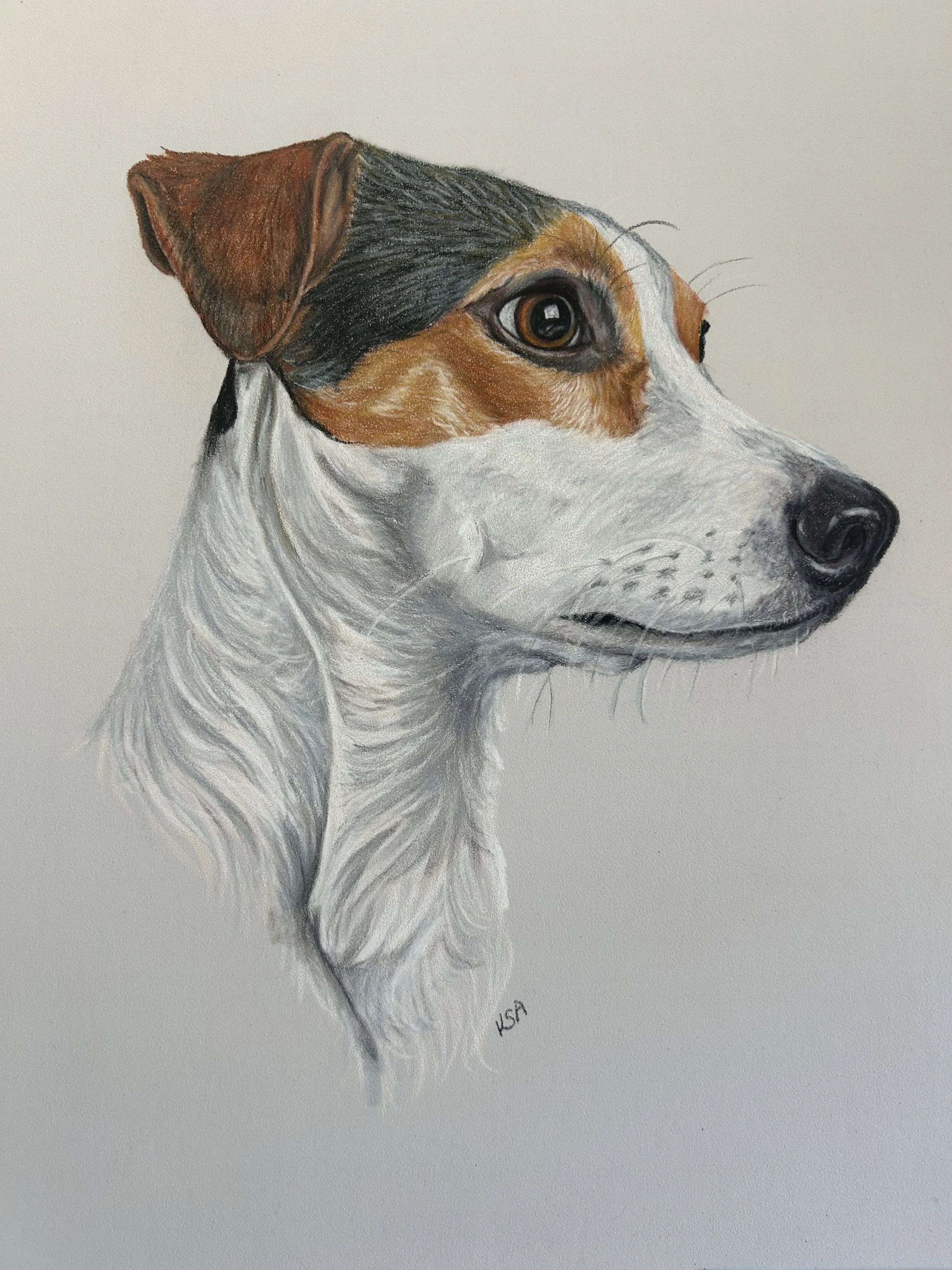 "The Watcher" A4 Pastelmat and Pencil ref with permission Gorgeous rendition of a Jack Russel Terrier. Always on guard, watching.