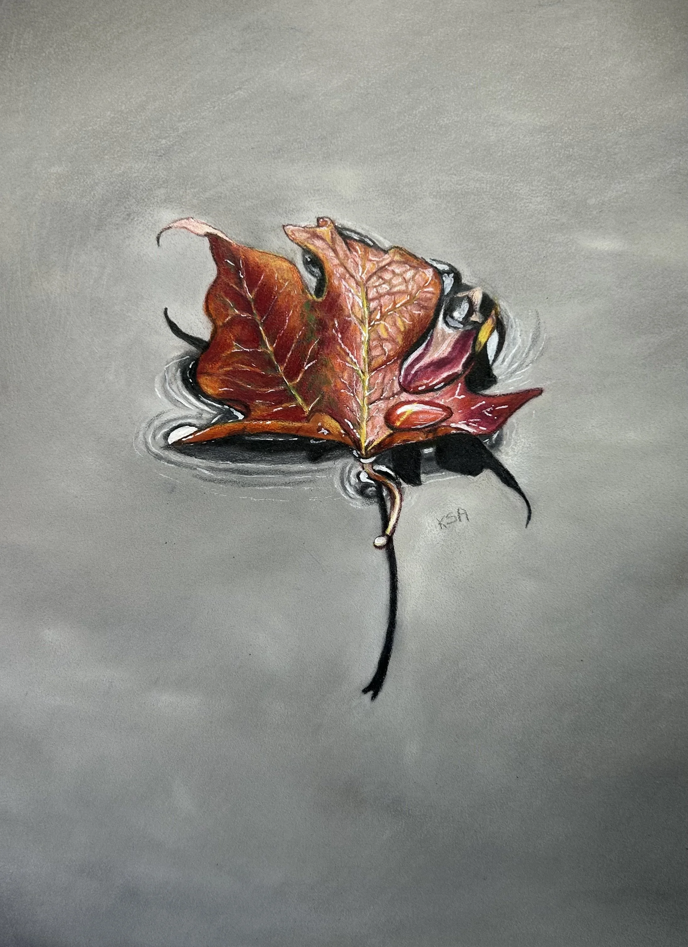 "Leaf on Water" A5 pastelmat with pencil and pastels ref photo with permission A limited number of fine art prints will be available soon.